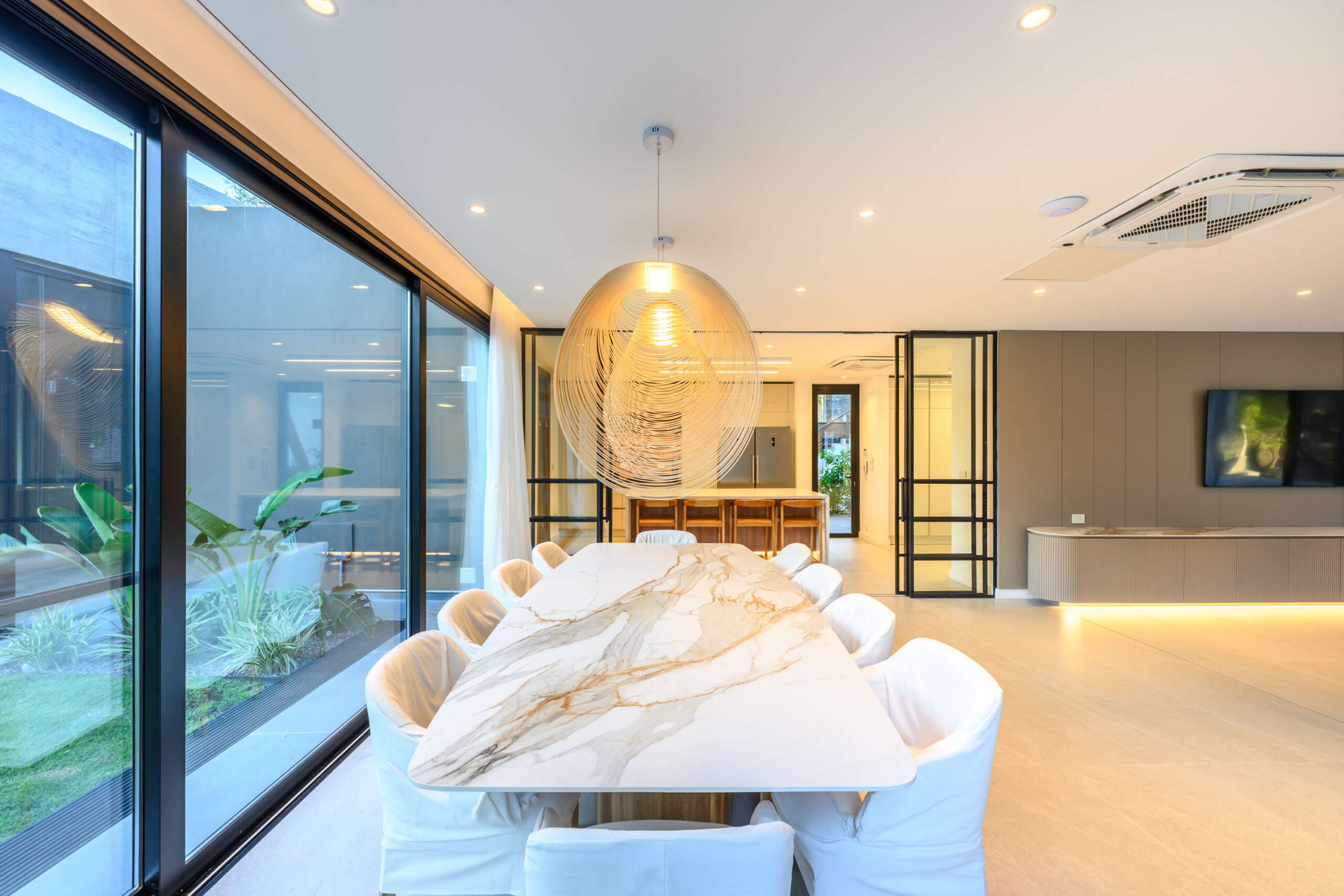 Cuando nuestros clientes nos contactaron, acababan de comprar una casa de más de 30 años, ubicada en un terreno espectacular pero con una arquitectura completamente desactualizada. A partir de sus referencias —contemporáneas, puras y minimalistas— nos propusimos un objetivo ambicioso: transformar por completo la espacialidad, la estética y la funcionalidad de esa vieja estructura.